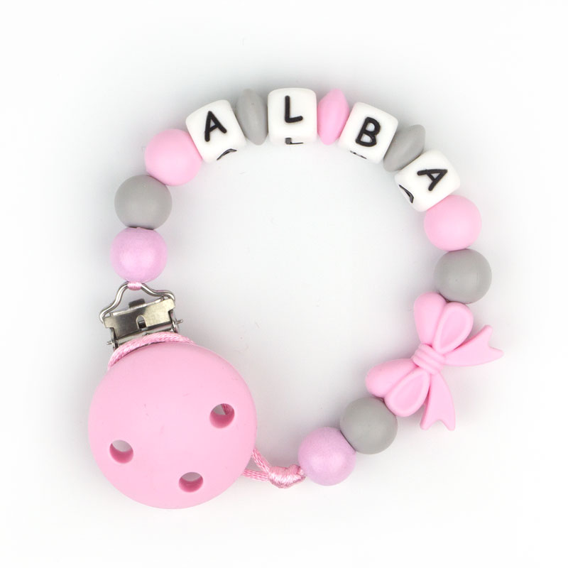 Chupetero de Silicona Personalizado Lazo Rosa