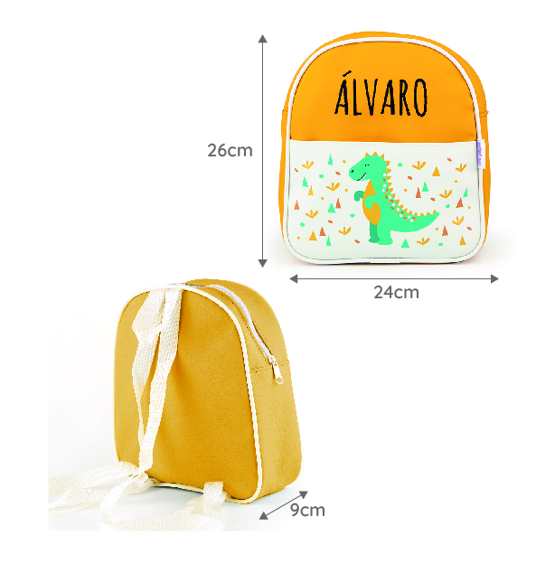 Mochila Guardería Dinosaurio Mostaza Personalizada