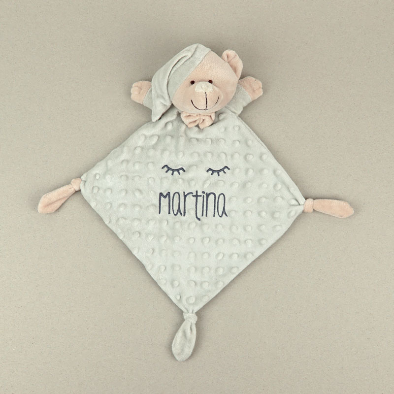El Dou Dou Clásico es un muñeco de apego que ayuda al bebé a calmarse identificándolo como un objeto familiar que le hace sentirse seguro. Es suave y blandito y se personaliza con el nombre del bebé bordado, además puedes añadirle un dibujo al nombre por el mismo precio.