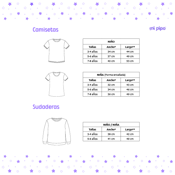 Puedes elegir entre, camiseta de niño, camiseta de niña o sudadera de niño/a.